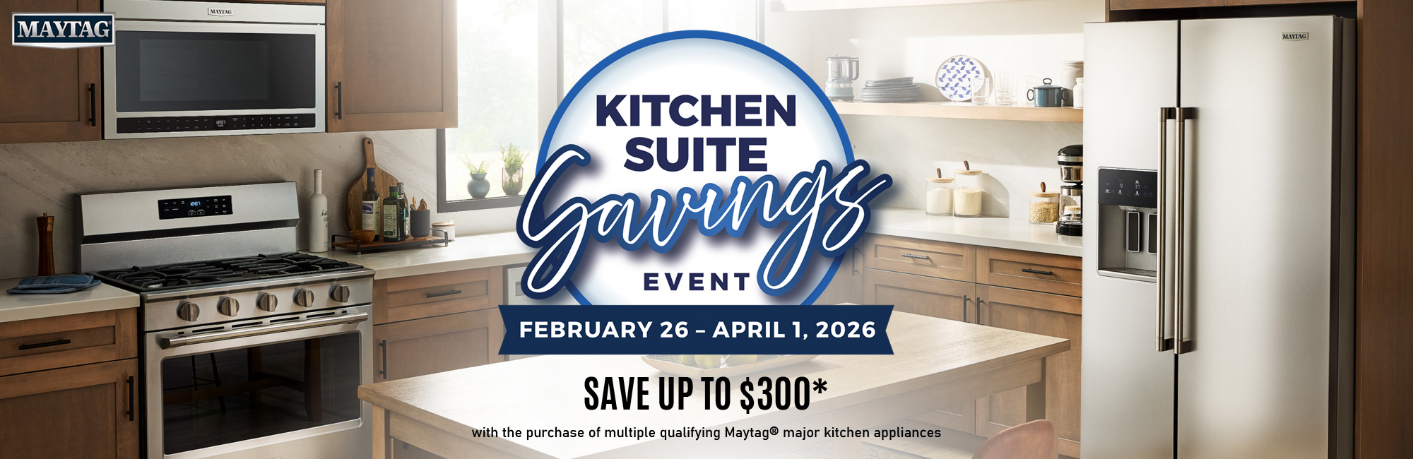 Save $300* with the purchase of 3+ qualifying Maytag kitchen appliances