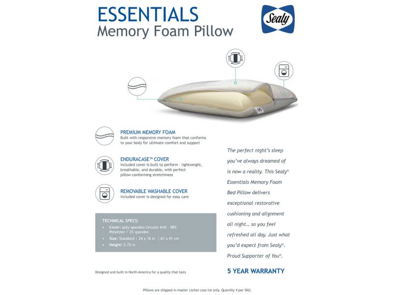 | Vendor Style Name | Sealy Essential Memory Foam Pillow |