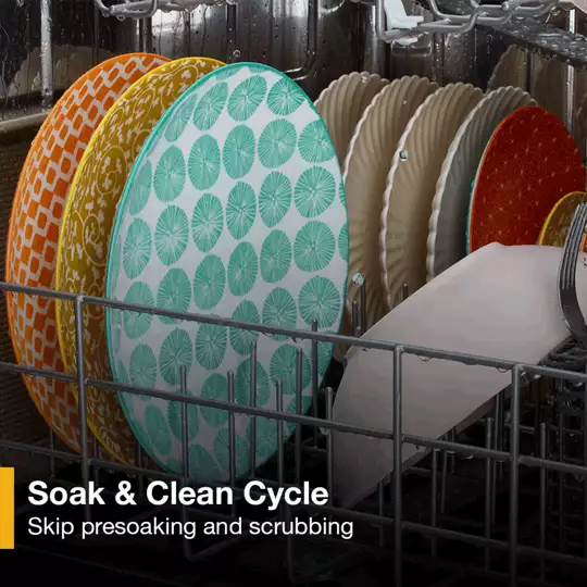 The Soak & Clean Cycle combines presoak and wash into one cycle that dissolves stuck-on-food so you can skip extra steps.