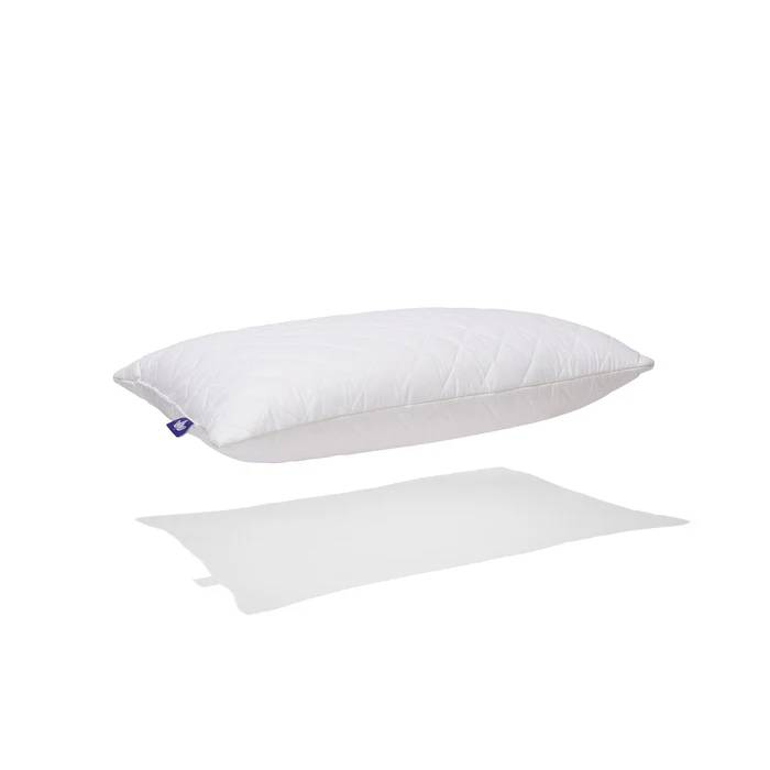 This pillow is filled with care in Canada. The pillow is filled with goose feather. Feathers provide great support in pillows, due to the feather quills. The outer shell is quilted 255 thread count cotton. The quilting results in a thicker, more cushiony shell, which creates a buffer against the feather, making the quills less noticeable than in a traditional feather pillow.