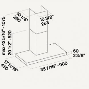 | Minimum distance | Electric hob: 20 in, Gas hob: 25 in |