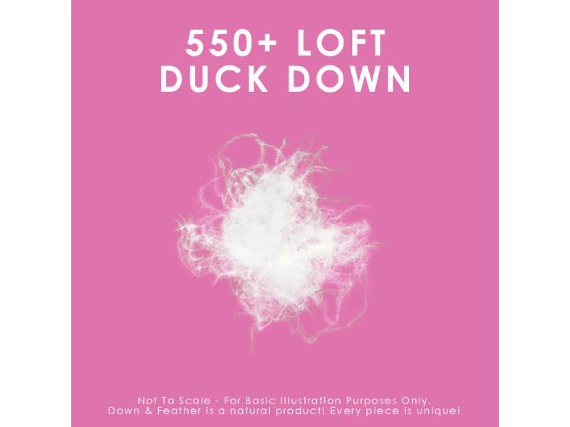 This duvet is filled with care in Canada. The cotton shell is 260 thread count, so it is crisp and durable. The duvet is filled with 550 loft duck down. Down fill is soft and luxurious, made up of tiny, fluffy clusters. This duvet is fairly lightweight, but you'll find this duvet contains more fill than a duvet with higher loft down. This is because the higher the loft of the down, the better the insulating properties, and the less of it we need to achieve the desired warmth level!