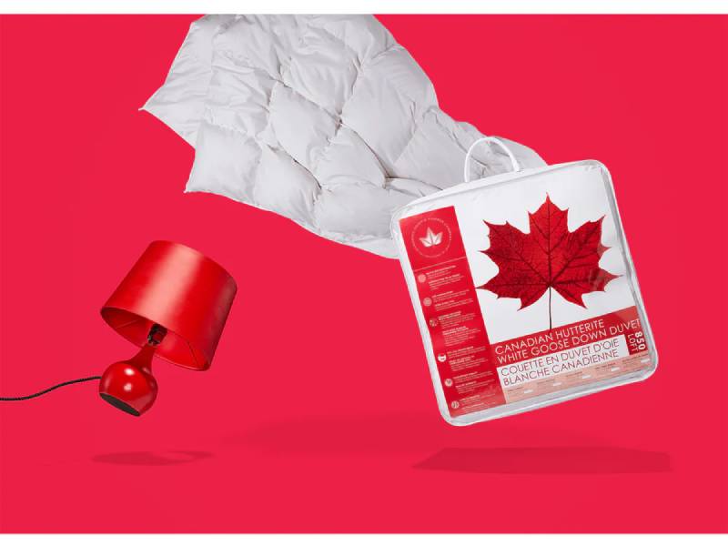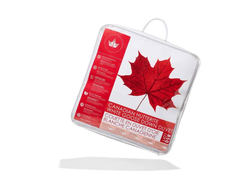 This duvet is made with care in Canada with Canadian fill. The shell is 500 thread count cotton – soft and quiet. The shell is filled with 850 loft goose down farmed by Hutterites in Alberta, Canada. Down fill is soft and luxurious, made up of tiny, fluffy clusters. The fill is very high loft, which means it is high quality and very warm per ounce. This is why you’ll find this duvet is very lightweight. Just a little bit of fill goes a long way in terms of warmth!