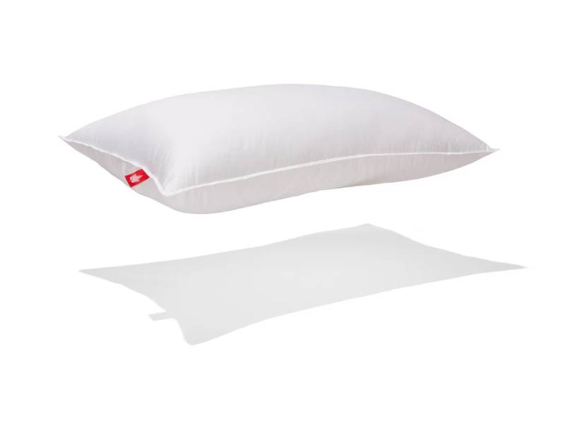 This pillow is made with care in Canada with Canadian fill. The shell is soft 500 thread count cotton. The fill is 850 loft goose down farmed by Hutterites in Alberta, Canada. Down is made up of tiny, fluffy clusters, so down pillows are very soft, sinky, and squishy.