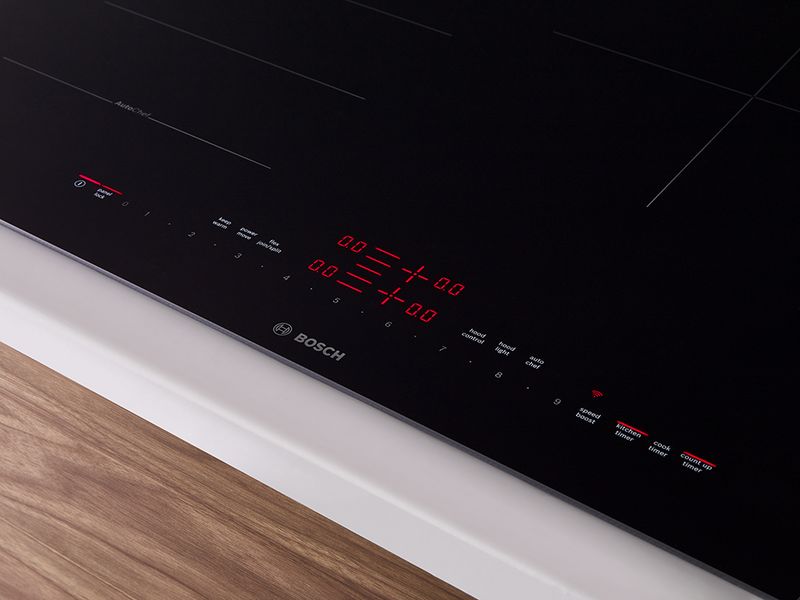 Wi-Fi Enabled cooktop allows for convenient remote monitoring with access to cooktop programs and settings via the Home Connect app.