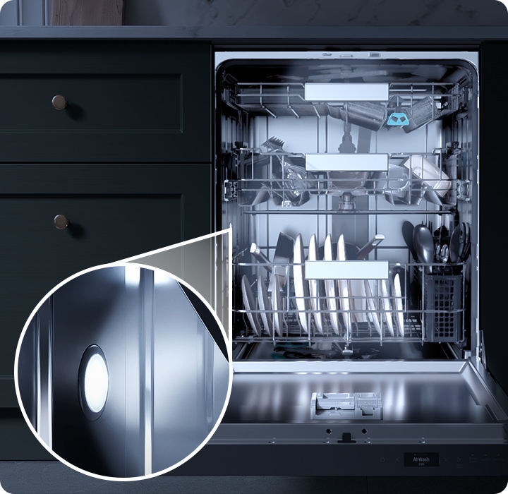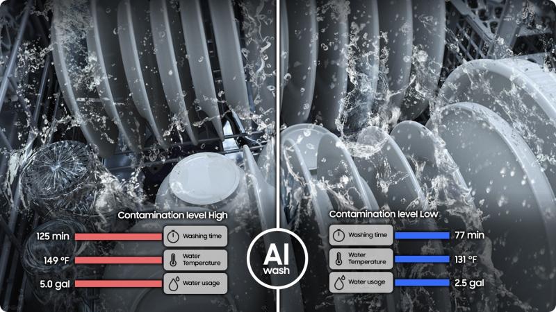 Clean dishes effortlessly* and efficiently. AI Wash uses a new high-resolution turbidity sensor and machine learning algorithm. It intelligently adjusts the washing and rinsing cycles to clean dishes and remove even stubborn leftover food and sticky residue without pre-rinsing.
