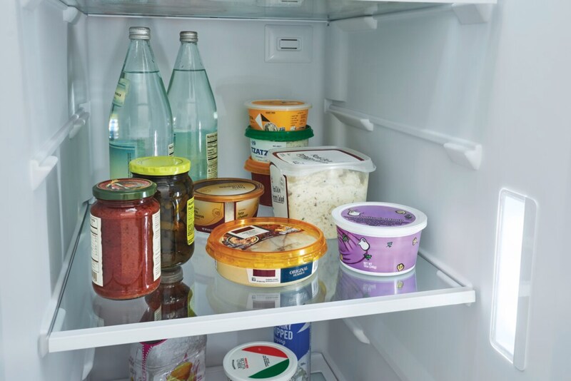 Gain additional space for larger containers and baking dishes with our edge-to-edge adjustable glass shelving.