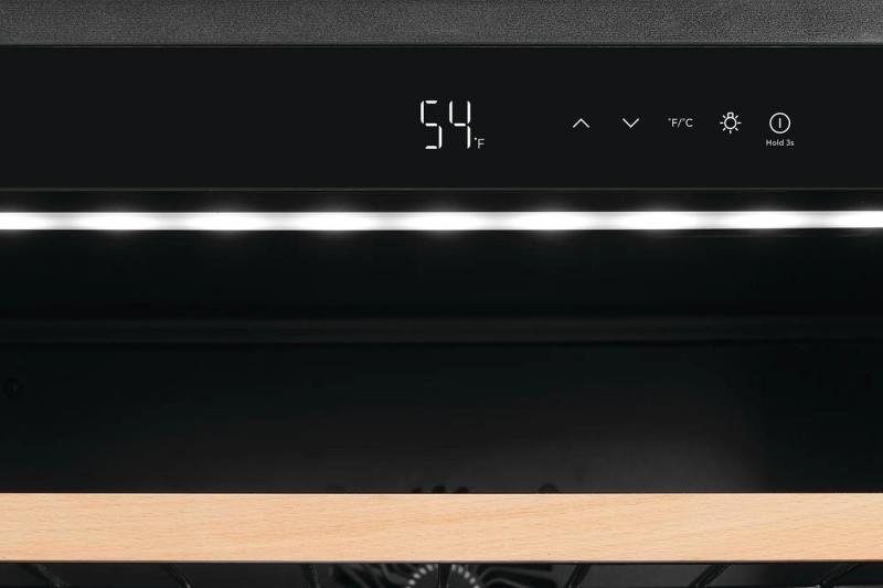 Set temperature anywhere between 41-64 degrees and the wine cooler will hold it precisely.