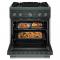 satisfies the needs of the most demanding cooks by combining the precise control of a gas cooking surface and the even baking, roasting and broiling of an electric oven.