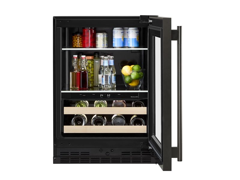 24" KitchenAid Beverage Center with Glass Door and Wood-Front Racks - KUBR524SBE