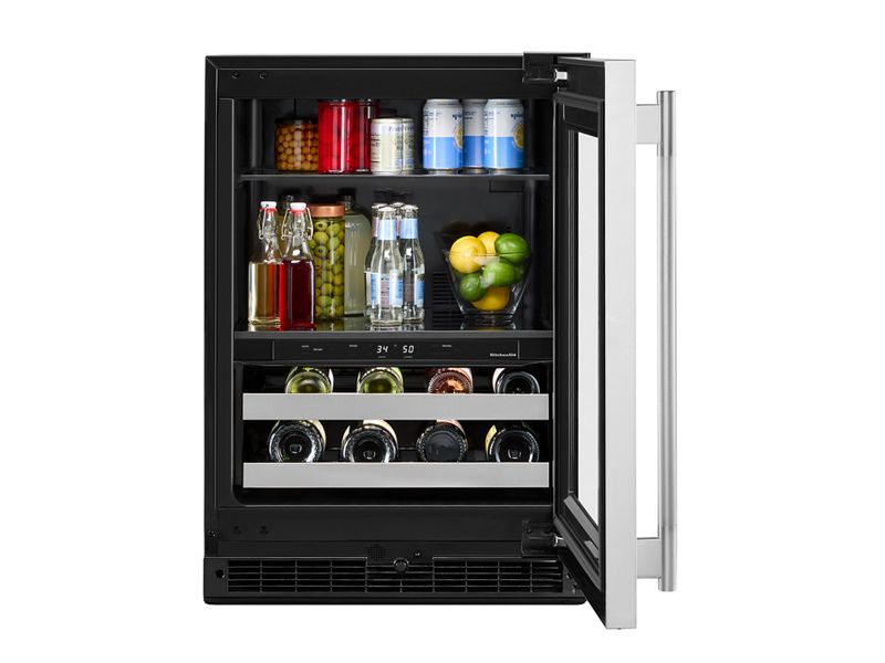 24" KitchenAid Beverage Center with Glass Door and Metal-Front Racks - KUBR524SSB