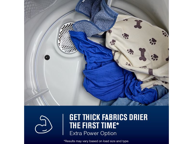 Extra Power option helps get thick fabrics, pockets and seams drier the first time*.*Results may vary based on load size and type.