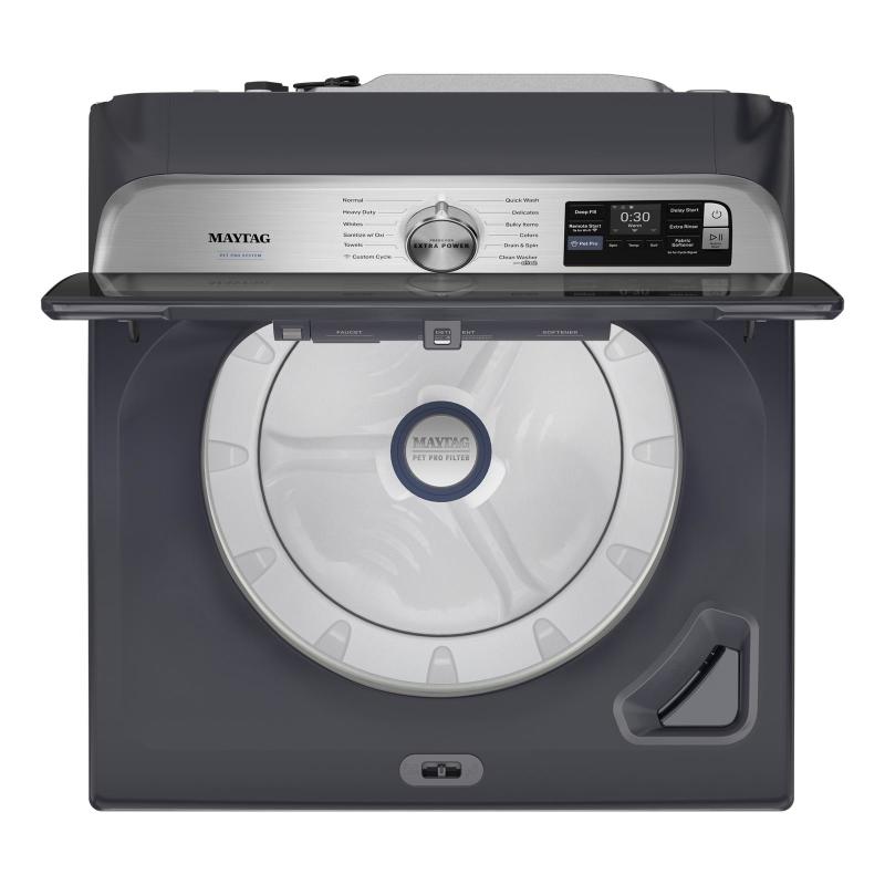 Conquer pet hair like a pro with the Maytag® Pet Pro System. The built-in Pet Pro Filter in the washer visibly removes pet hair, while the lint trap in the dryer traps and removes pet hair, load after load.