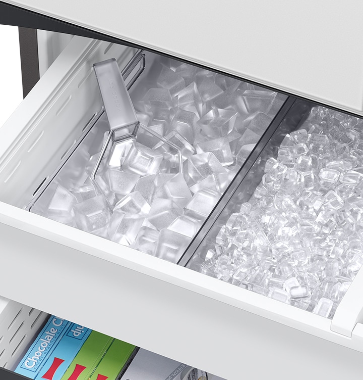 Make sure you are always prepared for any occasion with two different types of ice. The Dual Auto Ice Maker makes both Cubed Ice and Ice Bites, which chill drinks much faster. It can make 5.3lbs of ice a day and store up to 9.9lbs*. And, as it’s in the freezer, it frees-up space in the fridge.