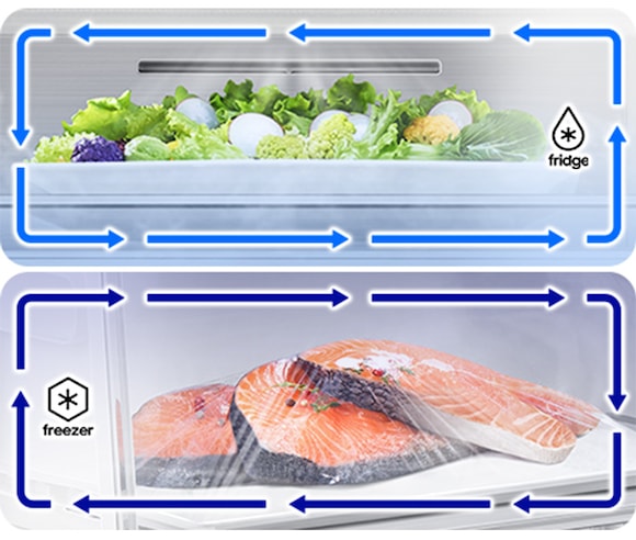 Twin Cooling Plus™ optimizes the temperature and humidity in the fridge and freezer using independent cooling in each compartment. It preserves fruits and vegetables in the best conditions and protects its natural flavor by preventing odors from mixing.