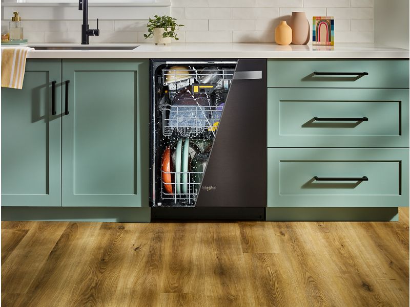 Whirlpool® 24-Inch Dishwasher with Total Coverage Wash Action and Auto Open Air Dry in Fingerprint Resistant Black Stainless