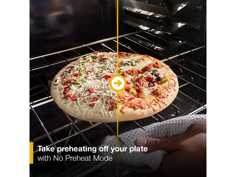 Take preheating off your plate with No Preheat Mode. Simply place your food in the oven and start baking. The oven will adjust the cook time for frozen pizzas and more.