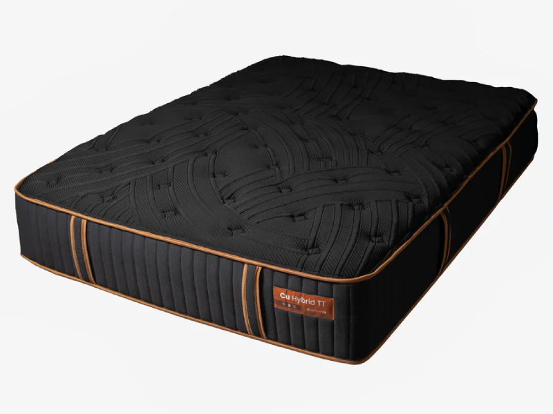 This 13" medium-feel tight top mattress combines the responsive support of individually wrapped pocket coils with copper-infused comfort layers, offering balanced pressure relief and temperature regulation. The tight top design delivers a clean, supportive surface with just the right amount of cushioning—ideal for those who prefer a sturdier feel without sacrificing comfort.
