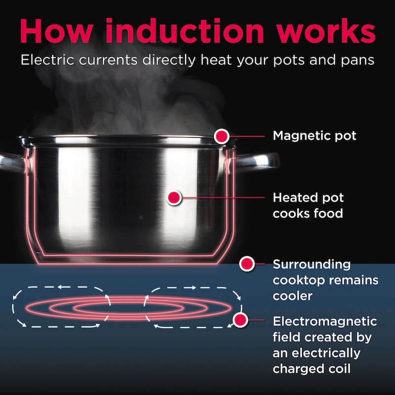 Induction only heats the pan and the food in it, so the area around the pan stays cooler.