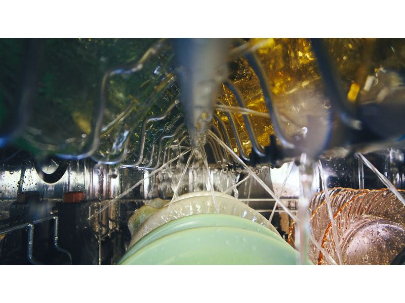 uses a sensor to measure soil levels and adapts wash time and water temperature as needed for tough messes or lighter loads, because no two meals are exactly the same.