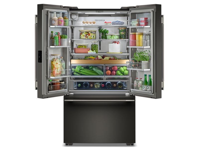 This KitchenAid® counter-depth french door refrigerator elevates your style with a Black Ore exterior color and option to upgrade with customizable hardware. The FreshChill™ Temperature-Controlled Full-Width Pantry Drawer lets you customize temperature settings for the items you reach for most. And the true counter-depth design allows the refrigerator to fit nearly flush with surrounding cabinetry, offering a built-in look and more room to move in your kitchen.