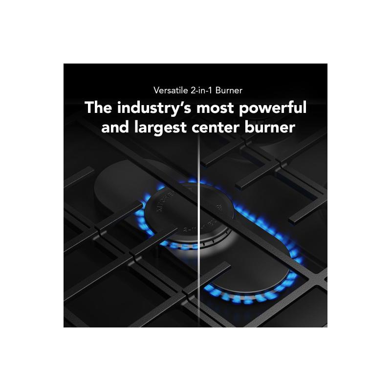 offers an unparalleled and versatile cooking experience. This innovative design features a stacked central burner, perfect for adapting to any cookware and recipe. Seamlessly transition from the oval burner, ideal for griddle cooking, to the round center burner, capable of handling your largest pots and pans.