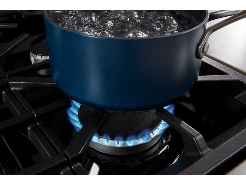 Get boiling faster* with Power™ Burner. With power up to 18,000 BTUs, it allows for a slow, even sauté and the intense heat for a seared, juicy steak.*Compared to Maytag® standard 12K burner on the same model.