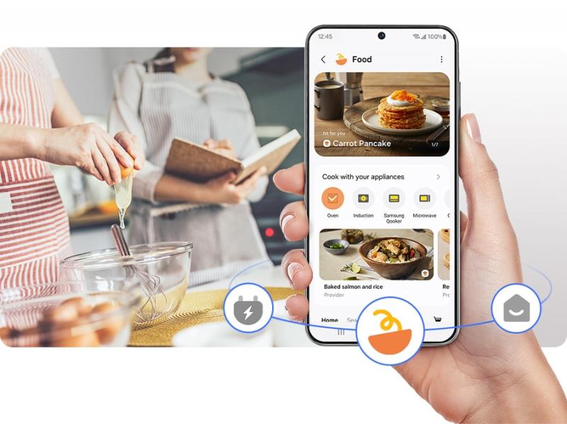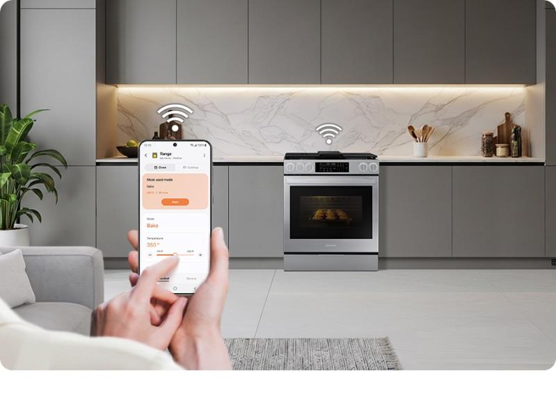 Smart cooking starts here. The SmartThings App* lets you monitor and control your oven remotely from your smartphone or with a voice assistant**, giving you flexibility to adjust settings and receive alerts anywhere. SmartThings Food recommends recipes for various contents.***, creates a daily meal plan, offers a guided cooking experience and enables effortless grocery shopping**** in one platform.