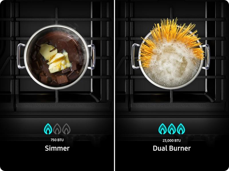 Cook dishes quickly using the powerful 23K BTU Dual Power Burner. Its high-output flame delivers fast, high-heat cooking that helps seal in flavor—ideal for sautéing and searing meats like steak. Use it to boil water fast and cook food rapidly.