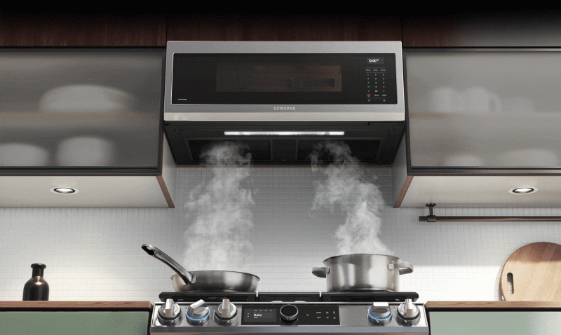 Auto Connectivity function¹ lets you pair the hood with a compatible Samsung range², allowing you to control the hood using the controls from the range³. Turn everything on and off with one touch, so the hood fan and LED lighitng can automatically come on when you start to cook.