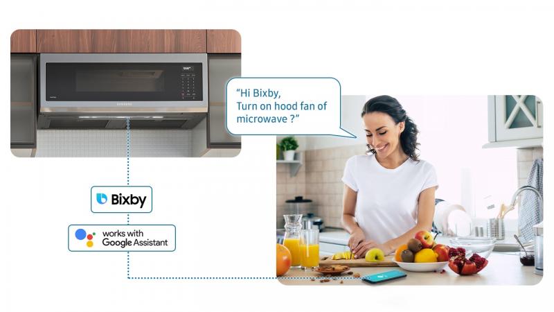 Turn the OTR on or off and adjust settings with your voice using a voice recognition assistant¹, such as Samsung Bixby, Amazon Alexa or Google Assistant². Using the SmartThings App³ you can also monitor and adjust settings or controls through your phone.