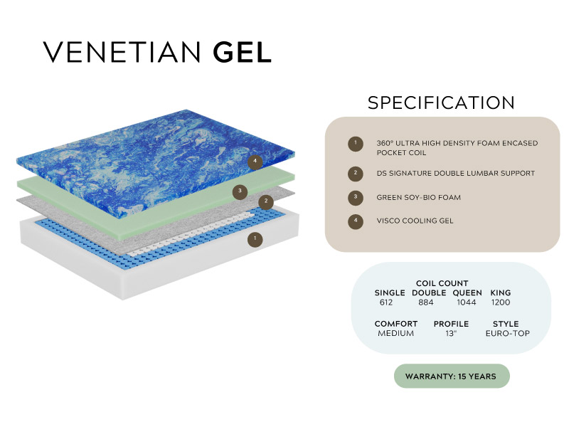 Elevate your sleep sanctuary with the Venetian Gel Euro-Top Mattress. Immerse yourself in the perfect blend of support and comfort, experiencing nights of luxury and rejuvenation.