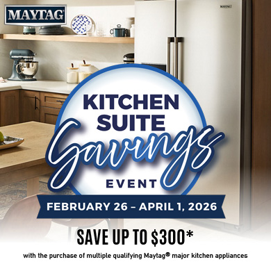 Save $300* with the purchase of 3+ qualifying Maytag kitchen appliances