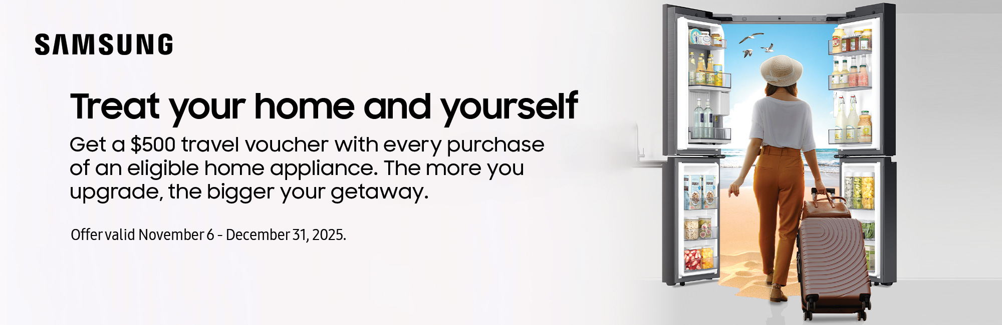 Get a $500 travel voucher with every purchase of an eligible home appliances. The more you upgrade, the bigger your getaway.
